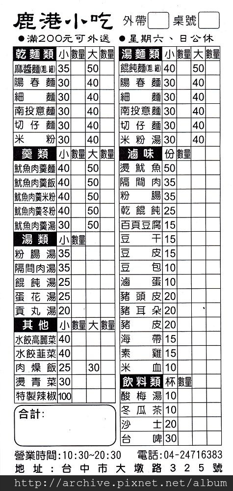 [鹿港小吃Menu菜單]價目表價錢價格價位網誌食記 | 加盟門市分店外送訂購電話地址營業時間