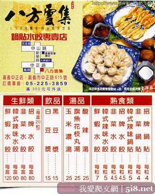 [八方雲集Menu菜單]價目表價錢價格價位網誌食記 | 加盟門市分店外送訂餐電話地址營業時間 // <![CDATA[ google_ad_client = "ca-pub-5253411006856269"; /* PIXNET#B */ google_ad_slot = "8308019879"; google_ad_width = 200; google_ad_height = 90; // ]]> // <![CDATA[ // ]]> // <![CDATA[ google_ad_client = "ca-pub-5253411006856269"; /* PIXNET#B */ google_ad_slot = "8308019879"; google_ad_width = 200; google_ad_height = 90; // ]]> // <![CDATA[ // ]]> // <![CDATA[ google_ad_client = "ca-pub-5253411006856269"; /* PIXNET#B */ google_ad_slot = "8308019879"; google_ad_width = 200; google_ad_height = 90; // ]]> // <![CDATA[ // ]]> [八方雲集鍋貼水餃專賣店]全省。菜單價目表 附上知名鍋貼連鎖店之一的八方雲集鍋貼專賣店,讓大家參考方便點餐,他們也有官方網站哦 (剛剛手爬機試了好像不通ing~)